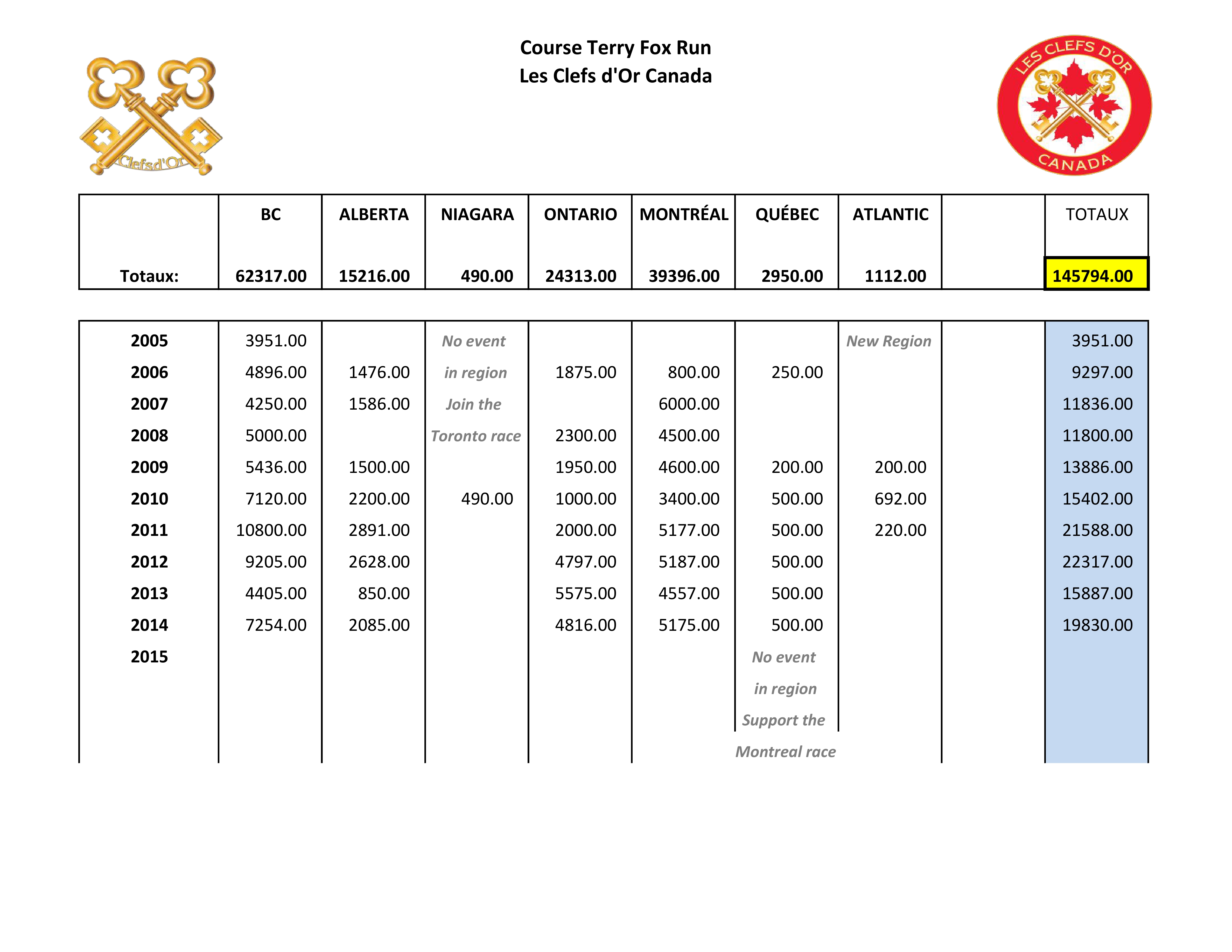 Over the last 10 years, the Les Clefs d’Or Canada Concierges were able to raise the phenomenal amount of $145,794. in donations!